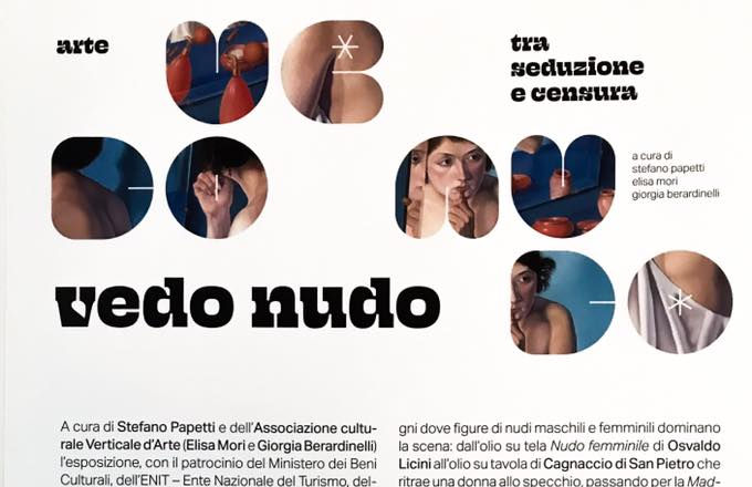 A cura di Stefano Papetti e dell’Associazione culturale Verticale d’Arte (Elisa Mori e Giorgia Berardinelli) l’esposizione, con il patrocinio del Ministero dei Beni Culturali, dell’ENIT – Ente Nazionale del Turismo, della Regione Marche, della Fondazione Marche Cultura e del Comune di San Benedetto del Tronto, Vedo Nudo. Arte tra seduzione e censura si pone come obiettivo lo sviluppo di un percorso storico artistico - ma anche concettuale - che accompagni lo spettatore a scoprire le molteplici espressioni e trasformazioni dei contenuti legati al nudo e alla sua percezione, dai primi del Novecento ai giorni nostri, ponendo al centro forme d’arte quali pittura, scultura, video installazioni, grafica e fotografia, al fine di coinvolgere il visitatore in un gioco di seduzione sottile che cresce in stretta connessione con le opere; il tutto senza mai dimenticare l’aspetto ironico, e in alcuni casi la componente di sensibilizzazione verso un tema che può anche essere identificato come controverso ma che da sempre ha stuzzicato la mente e la fantasia umana.